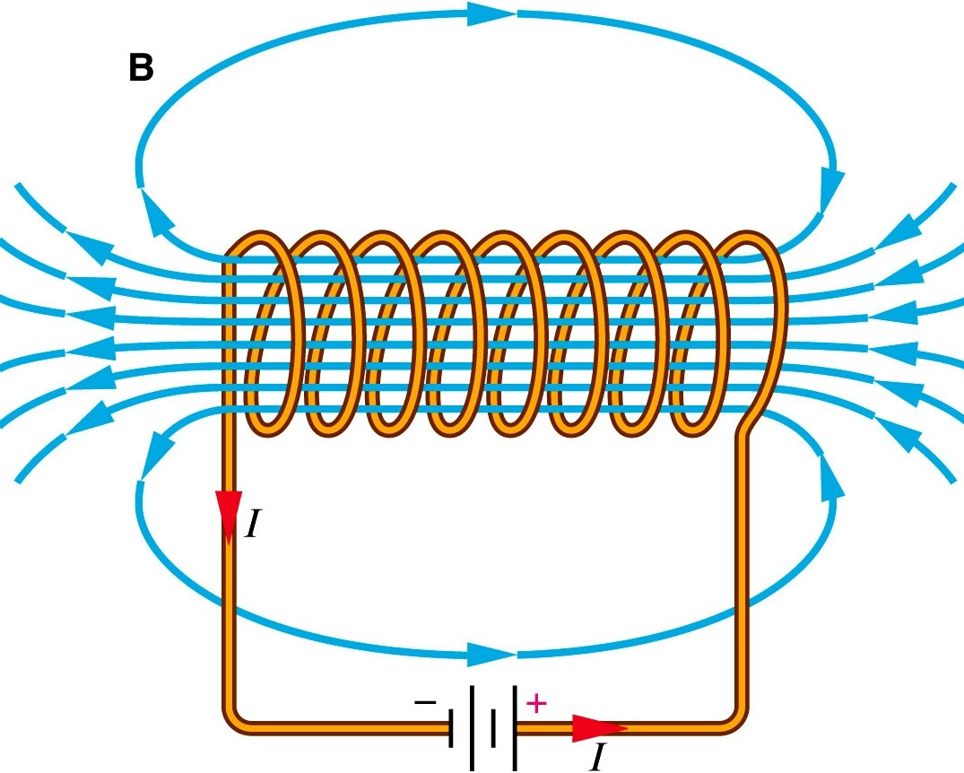 Figure 1: Solenoid magnetic field generated by current loop. (Source: brilliant.org)