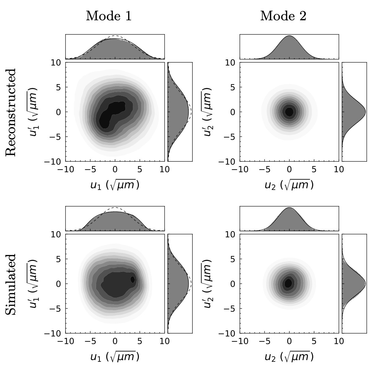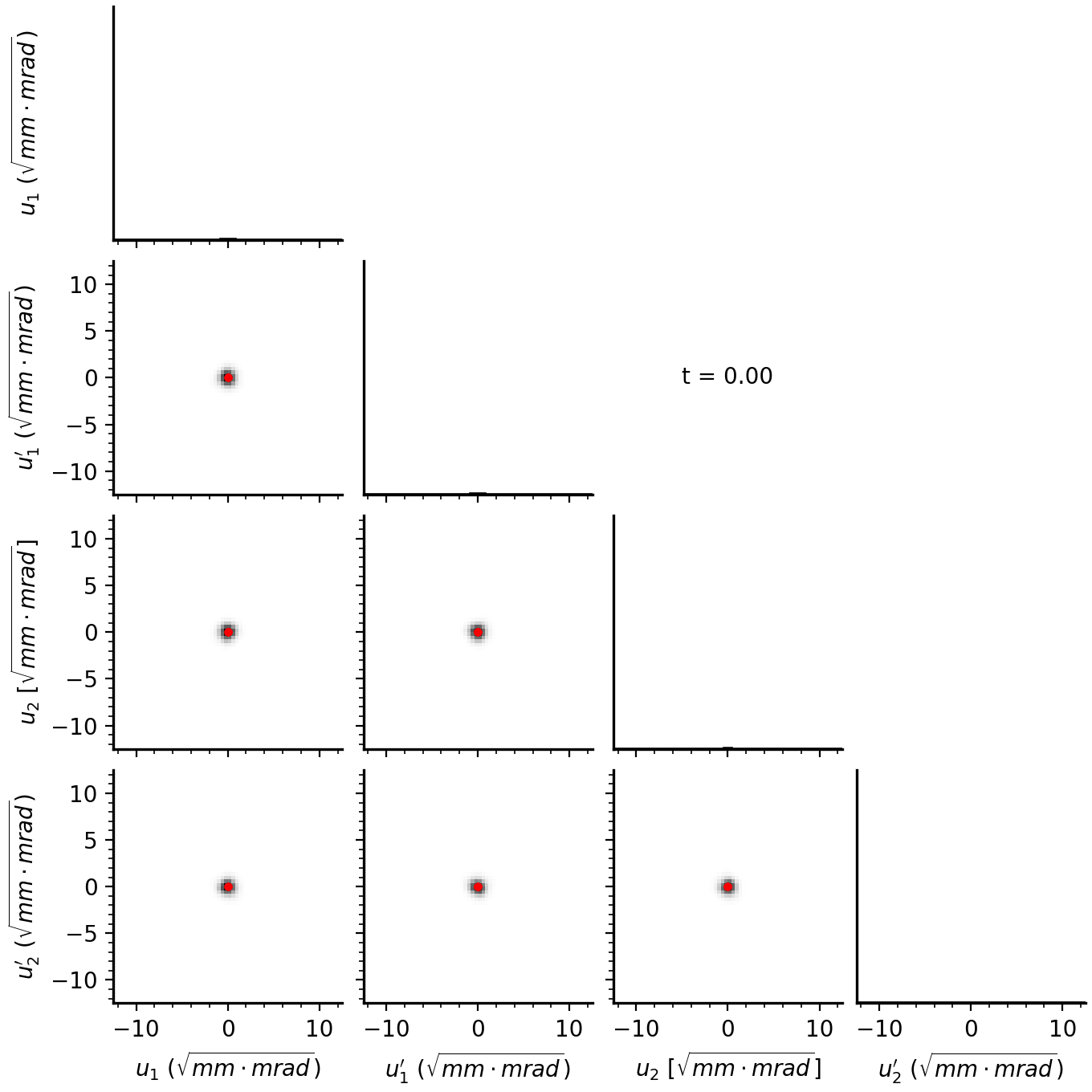 Figure 13 shows the reconstructed distribution in normalized coordinates (Equation 12}, projected onto the two-dimensional phase planes. The second two rows show a simulated distribution.